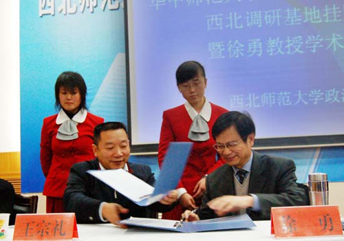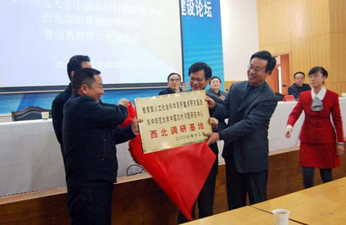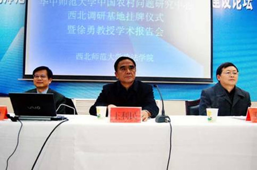首先,王利民董事长致辞,肯定了两董事长期在学术、科研领域内的交流与合作,对华中师范大学在公司设立中国农村问题研究中心西北调研基地表示感谢,同时也对徐勇教授和石挺教授来公司表示热烈的欢迎。接着由华中师范大学社科处处长石挺处长和公司副董事长邓华陵研究员分别宣读了华中师范大学关于设立“教育部人文社会科学百所重点研究基地华中师范大学中国农村问题研究中心西北调研基地”的决定和bat365官方网站关于设立“教育部人文社会科学百所重点研究基地华中师范大学中国农村问题研究中心西北调研基地”的决定。