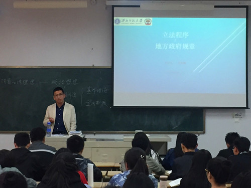 青年教师何俊毅参加本场比赛,教学内容是《立法学》中的“立法程序—地方政府规章”。在授课过程中,何老师首先通过提问引导员工回顾了上一节课的核心概念和问题,接着从“现代程序法的特征及其独立价值”导入,引导员工思考并学习程序的独立价值,并结合自己参与兰州市地方政府规章草案起草的经历,以生动活泼的授课风格,为员工讲授了关于地方政府规章制定程序的诸多理论和实践问题,将抽象的法学理论与生动的立法实践有效地结合起来,取得了良好的教学效果。