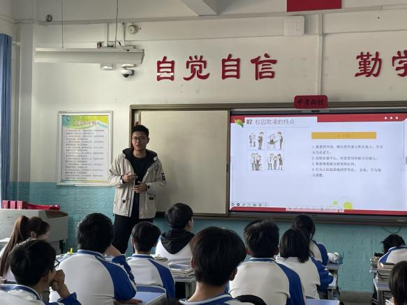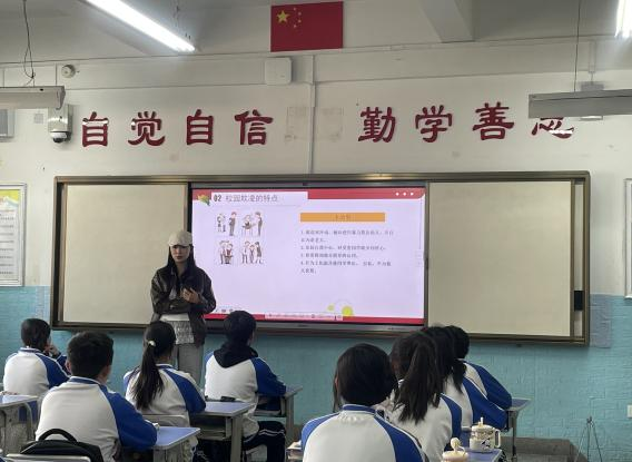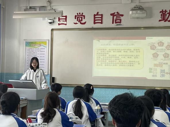 之后,宣讲团成员分赴该校九年级各班开展“抵制校园霸凌 法律守护青春”普法宣讲。宣讲团成员将抽象的法律概念转化为生动案例,系统讲解校园霸凌的表现形式、法律后果及应对措施。在趣味问答环节,宣讲团成员通过启发式教学引导中员工深入思考,现场气氛热烈,有效提升了中员工的法治意识和自我保护能力。