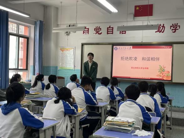 4月14日下午,公司党委副书记雷春芳、团委书记白洁、青年志愿者协会指导教师黄海燕带领12名普法宣讲团成员走进兰州市第十二中学,开展了“抵制校园霸凌 法律守护青春”为主题的普法宣讲活动。