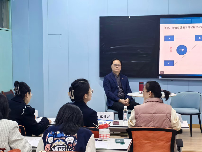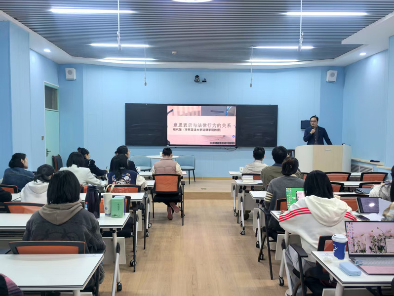 2025年4月17日上午,华东政法大学法律学院杨代雄教授应邀来公司做题为《意思表示与法律行为的关系》学术讲座。公司副经理罗杰主持,张钰涵副教授、解彩霞博士参会与谈,相关学科研究生40多人聆听讲座。