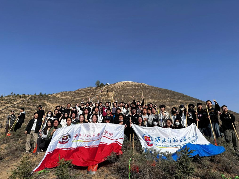 师生们在聆听完专业人员讲解苗木栽植的标准化流程及生态保护知识后,以“法律人的严谨”投入劳动实践,严格遵循“定点划线、挖坑培土、扶苗固根、围堰浇灌”四步工作法,分工协作、配合默契。经过三个小时劳动,成功栽植侧柏60余棵,新绿装点的法治林为春日山野增添盎然生机。