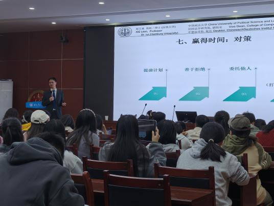4月25日下午,中国政法大学中德bat365官网平台经理谢立斌教授受邀莅临bat365官方网站,以《法学论文写作与时间管理》为主题开展专题讲座,为师生带来一场兼具学术深度与实践指导的知识盛宴。