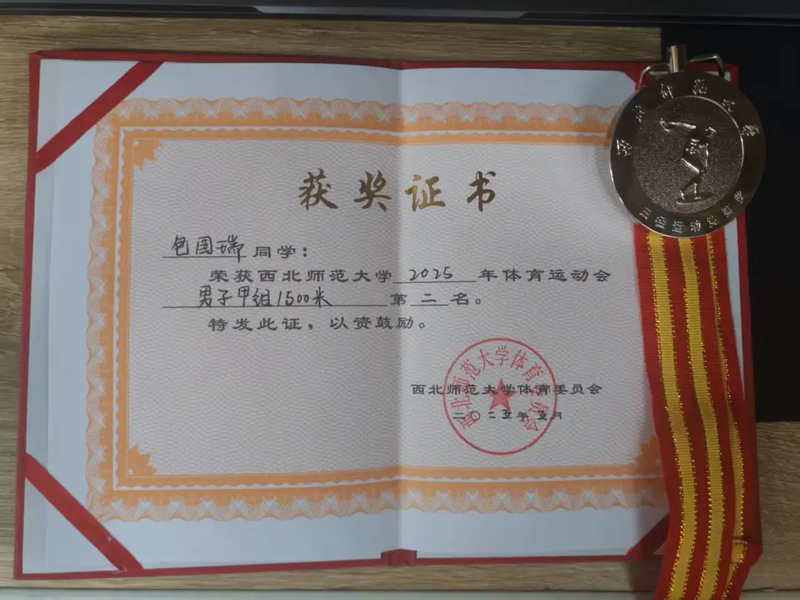 在男子甲组1500米的比赛中,包国瑞同学以其出色的发挥夺得第二名,以其卓越的实力体现出扎实的训练成果。